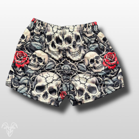 Goat Strength 5" Inseam Skull and Roses Design Mesh Gym Shorts - 5 inch inseam shorts- Zipper Pockets