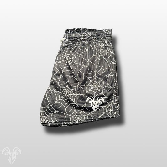 Goat Strength Spider Web Mesh Shorts – Halloween 5” Inseam Athletic Shorts with Zipper Pockets