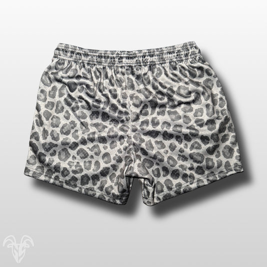 Goat Strength Dark Leopard Print Mesh Shorts – 5” Inseam Athletic Shorts with Zipper Pockets for Gym, Pickleball, Running & Everyday Wear