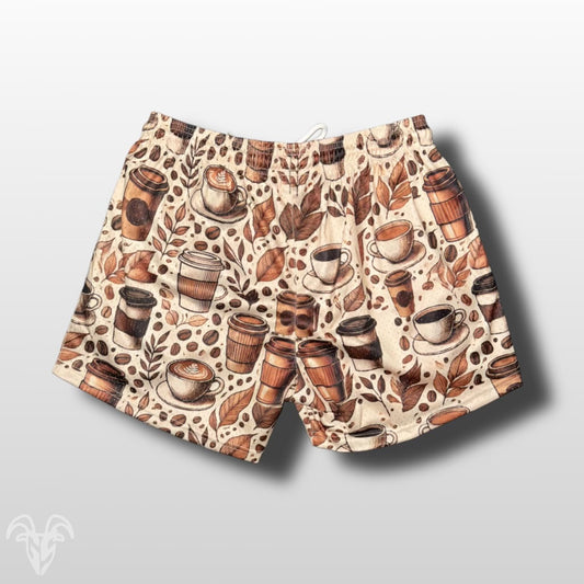 Goat Strength 5" Inseam Mesh Shorts - Coffee-Themed Design - Athletic stretchy material breathable for workouts or just casual wear