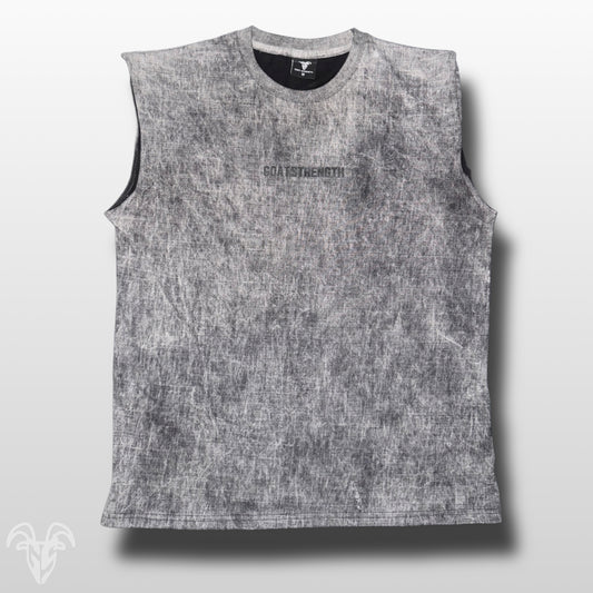Goat Strength Black & White Washed Cotton Cutoff - Premium Quality Tank Top T-Shirt for Casual Wear & Athletic Activities - Gym Pump Cover with over the shoulder Acid Wash Tank Cut-Off