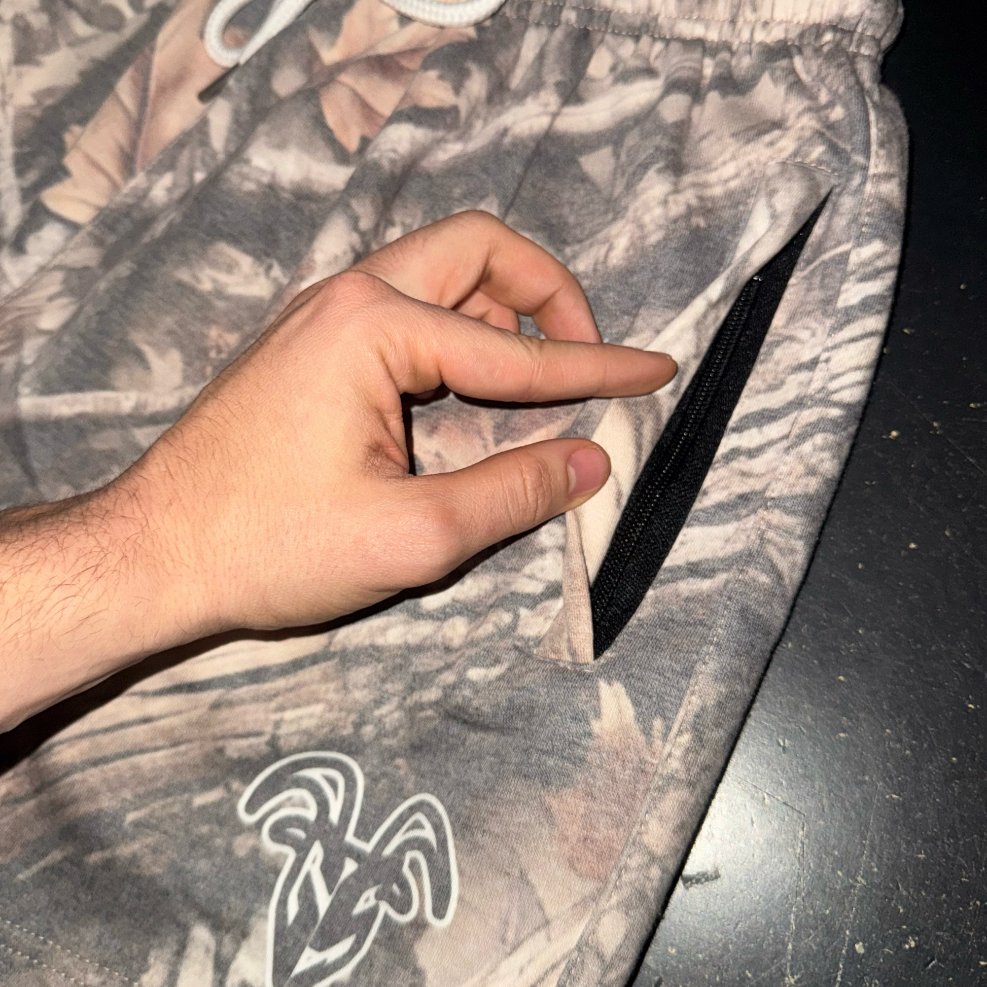 5-Inch Inseam Hunter Camo Cotton Gym Shorts with Zipper Pockets - Hunter Camo Design for Active Wear