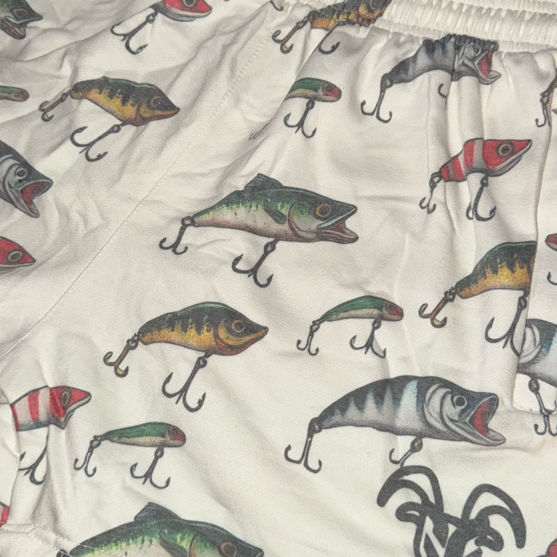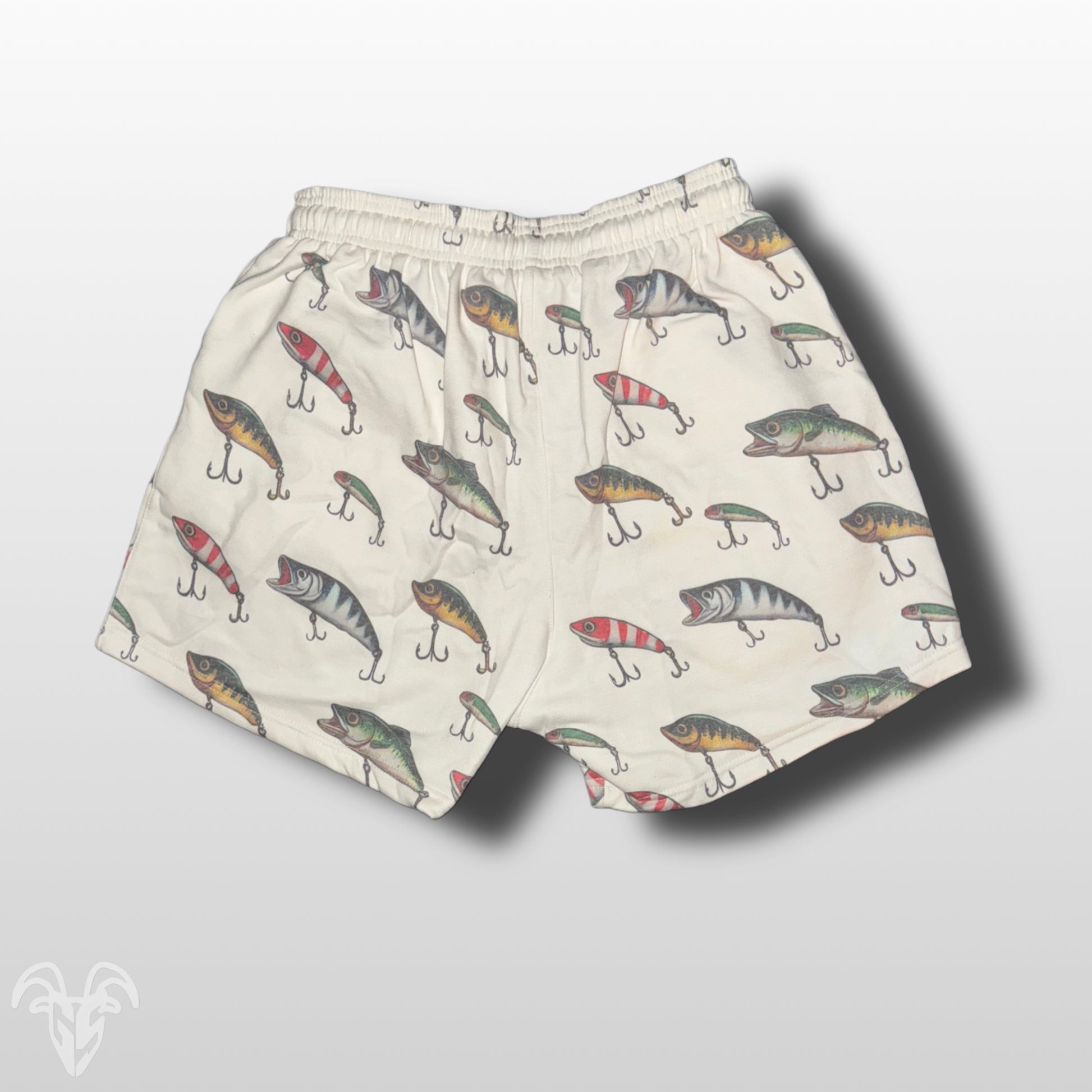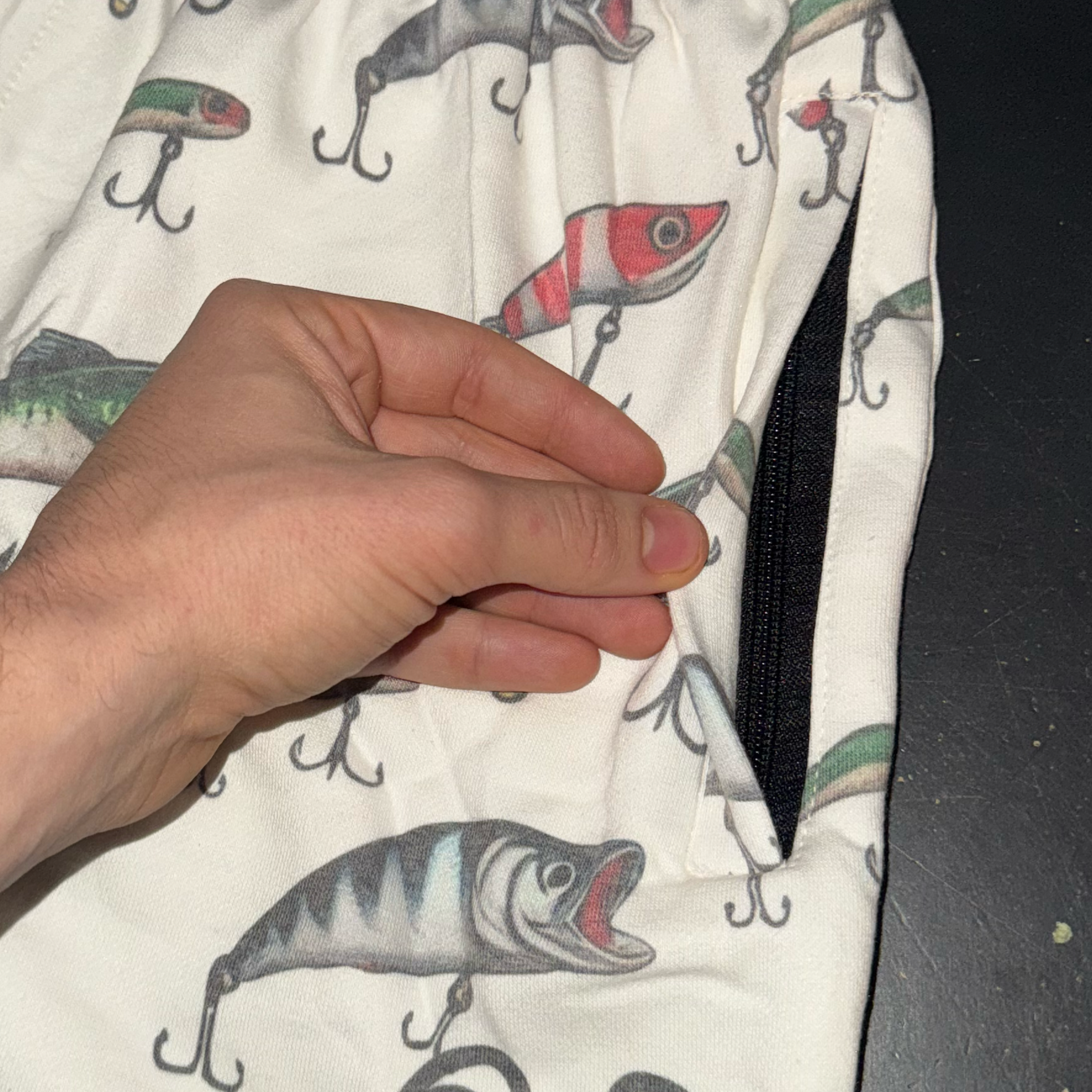 5-Inch Inseam Fishing Lure Cotton Gym Shorts with Zipper Pockets - Fishing Lure Design for Active Wear