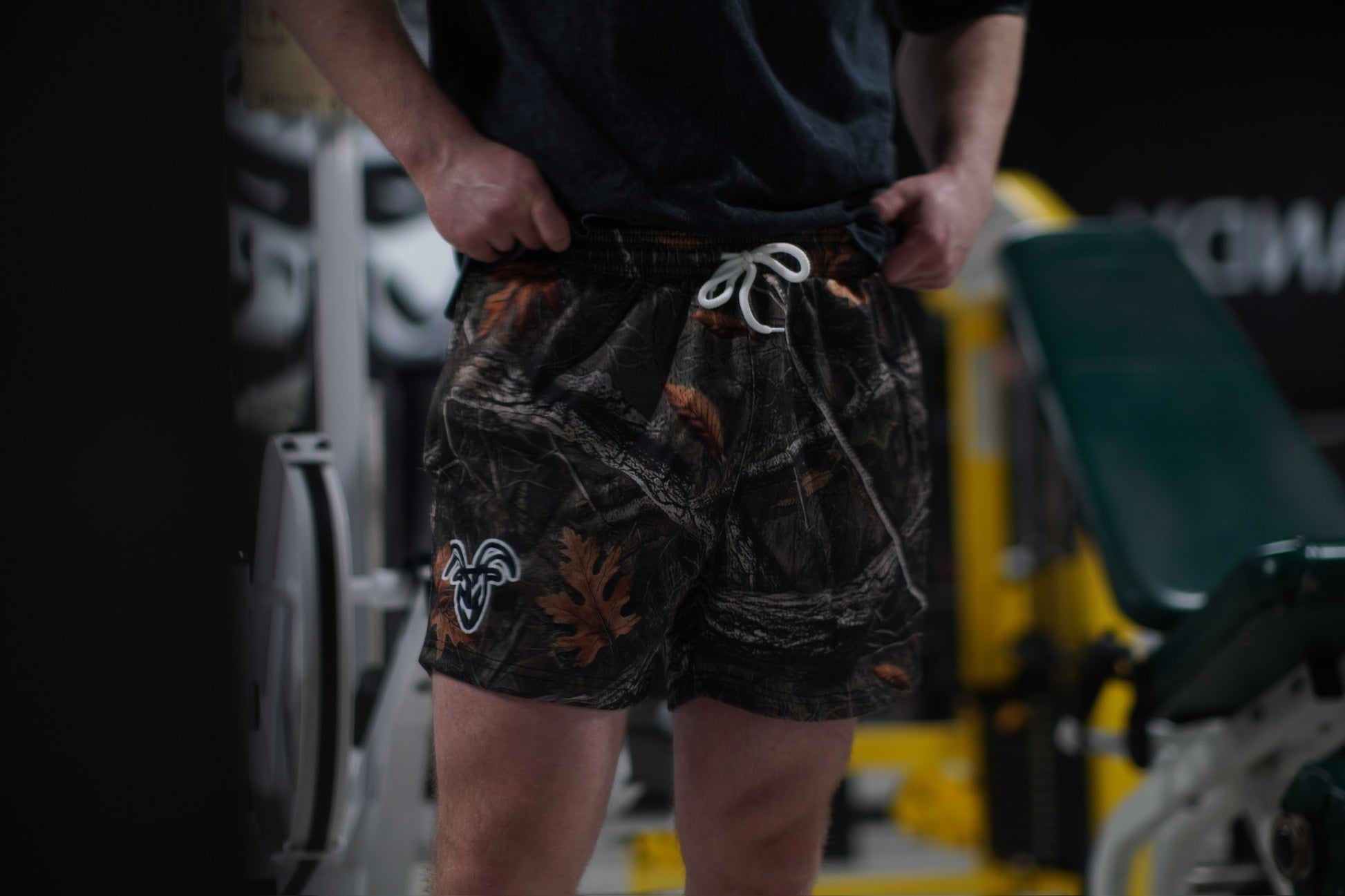 Goat Strength Mesh Shorts / Men's Shorts 5 inch inseam CAMO Shorts Gym Breathable Elastic Workout | Realistic camouflage athletic shorts