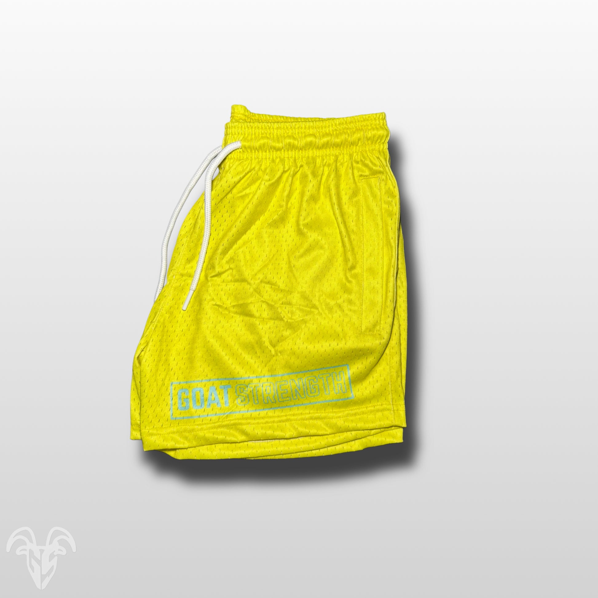The Goat Strength Solid Yellow Mesh Shorts (with zipper pcokets)with Electric Blue Logo are built for performance, comfort, and everyday wear. Featuring a bold solid yellow color paired with a high-contrast electric blue Goat Strength logo, these men’s athletic shorts are designed to stand out in the gym while delivering breathable, all-day comfort.