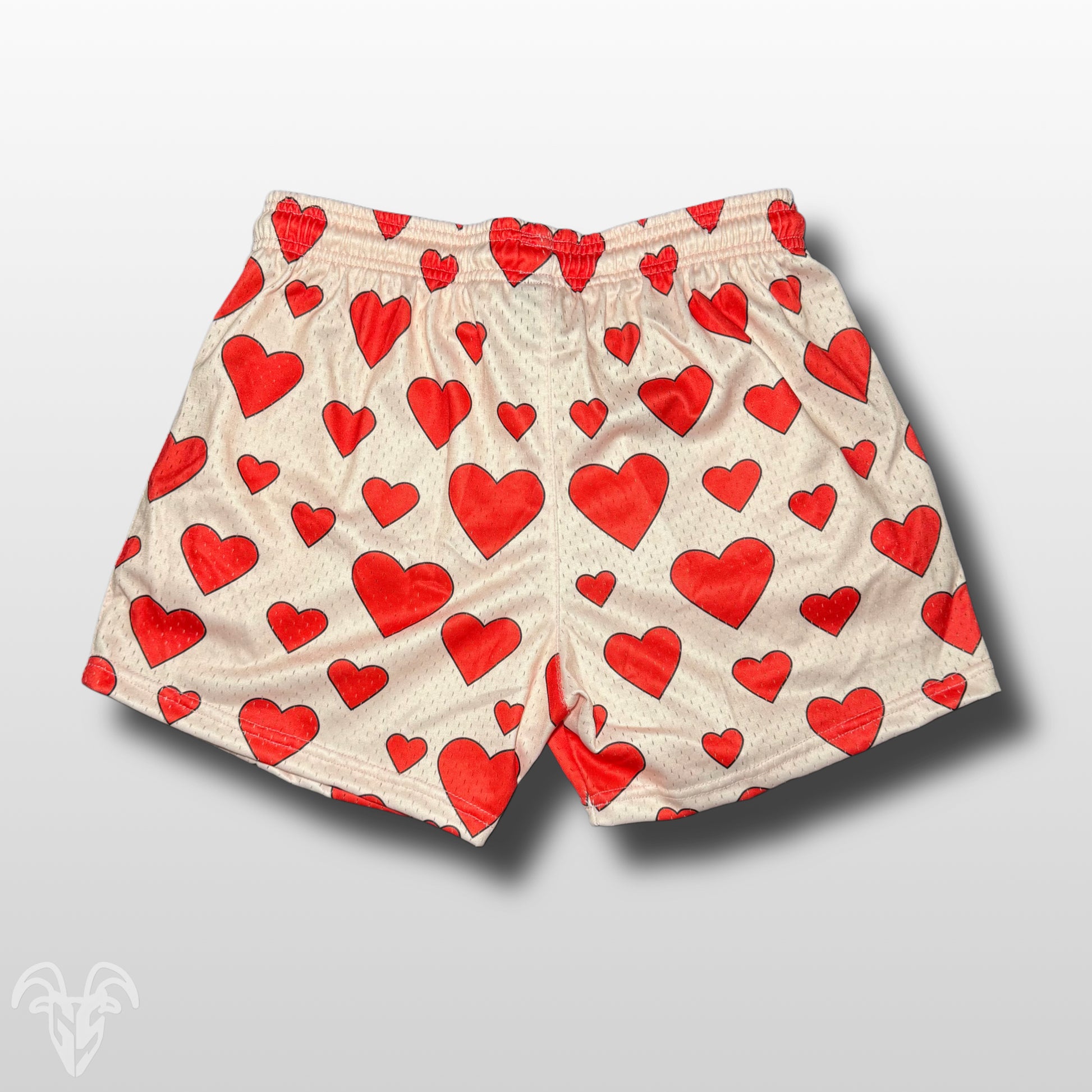 Goat Strength 5” Inseam Mesh Shorts – Valentine’s Day Heart Design – Athletic Workout Shorts W/ Zipper Pockets