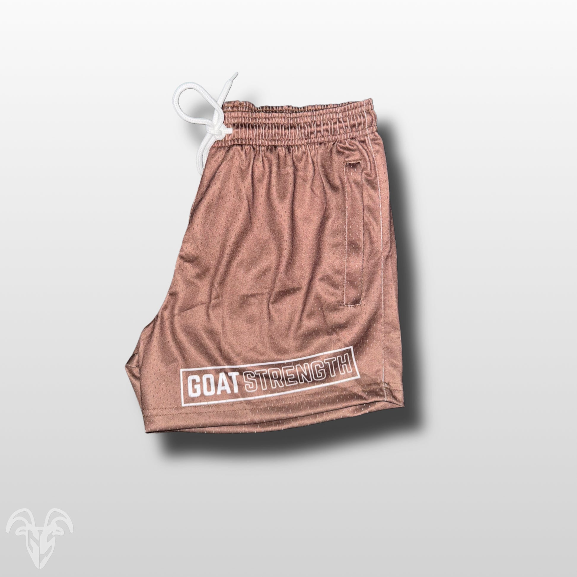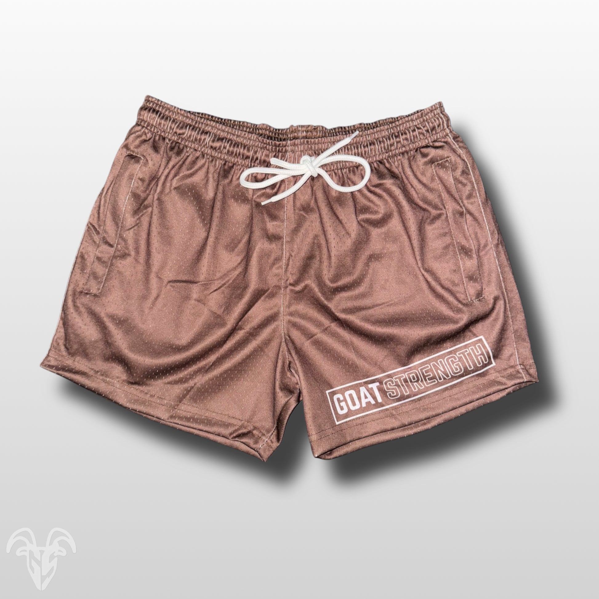 Goat Strength Brown Mesh Athletic Shorts – 5” Inseam with Zipper Pockets