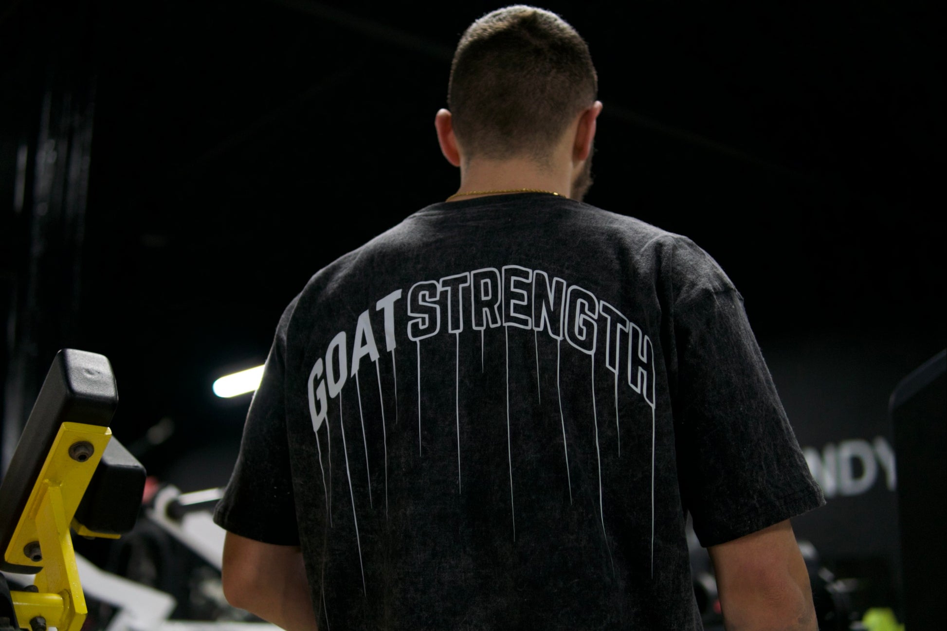 The front features a subtle yet bold Goat Strength emblem, a testament to your relentless dedication to the grind. The distressed, lived-in aesthetic makes it a statement piece whether you’re in the gym, on the go, or lounging post-workout.