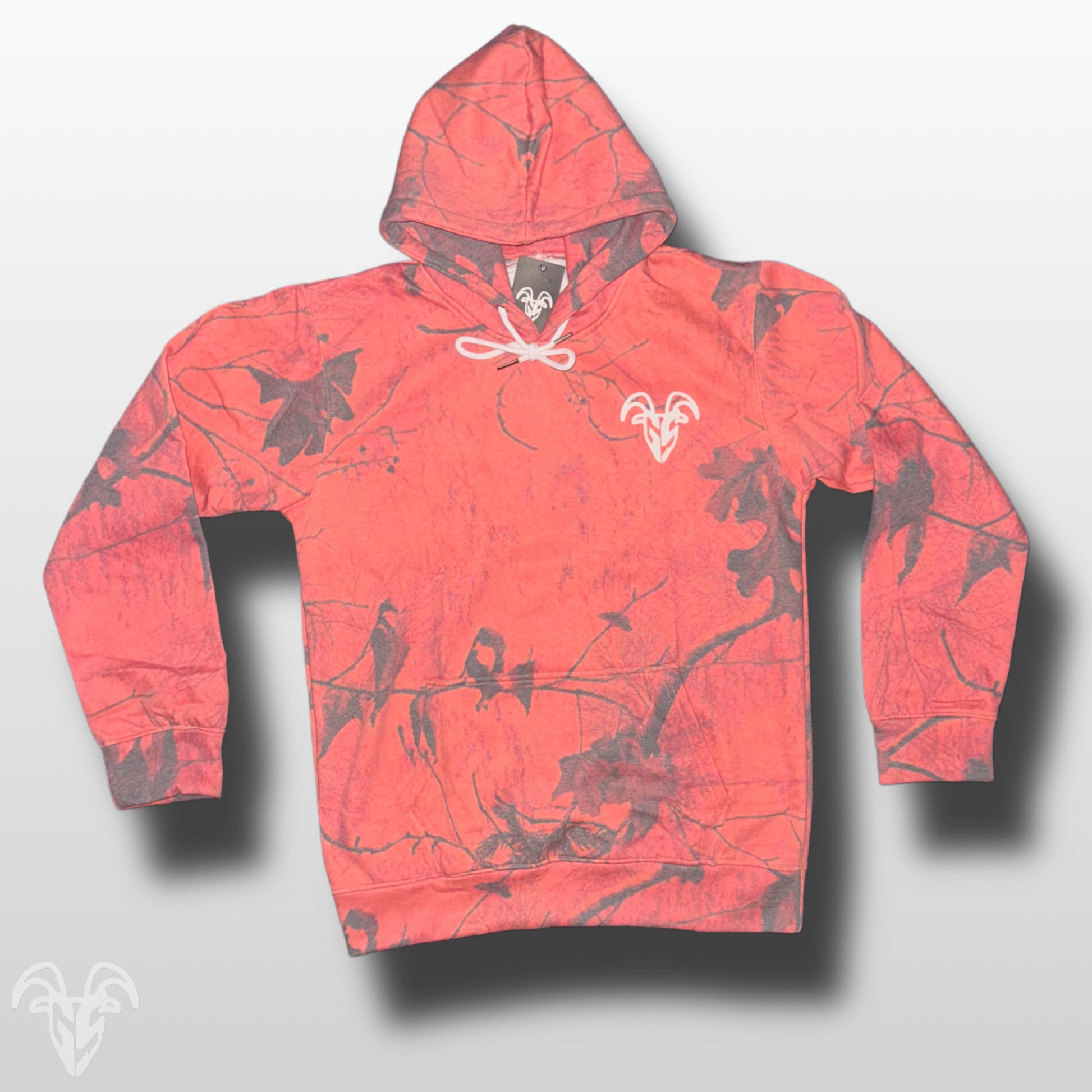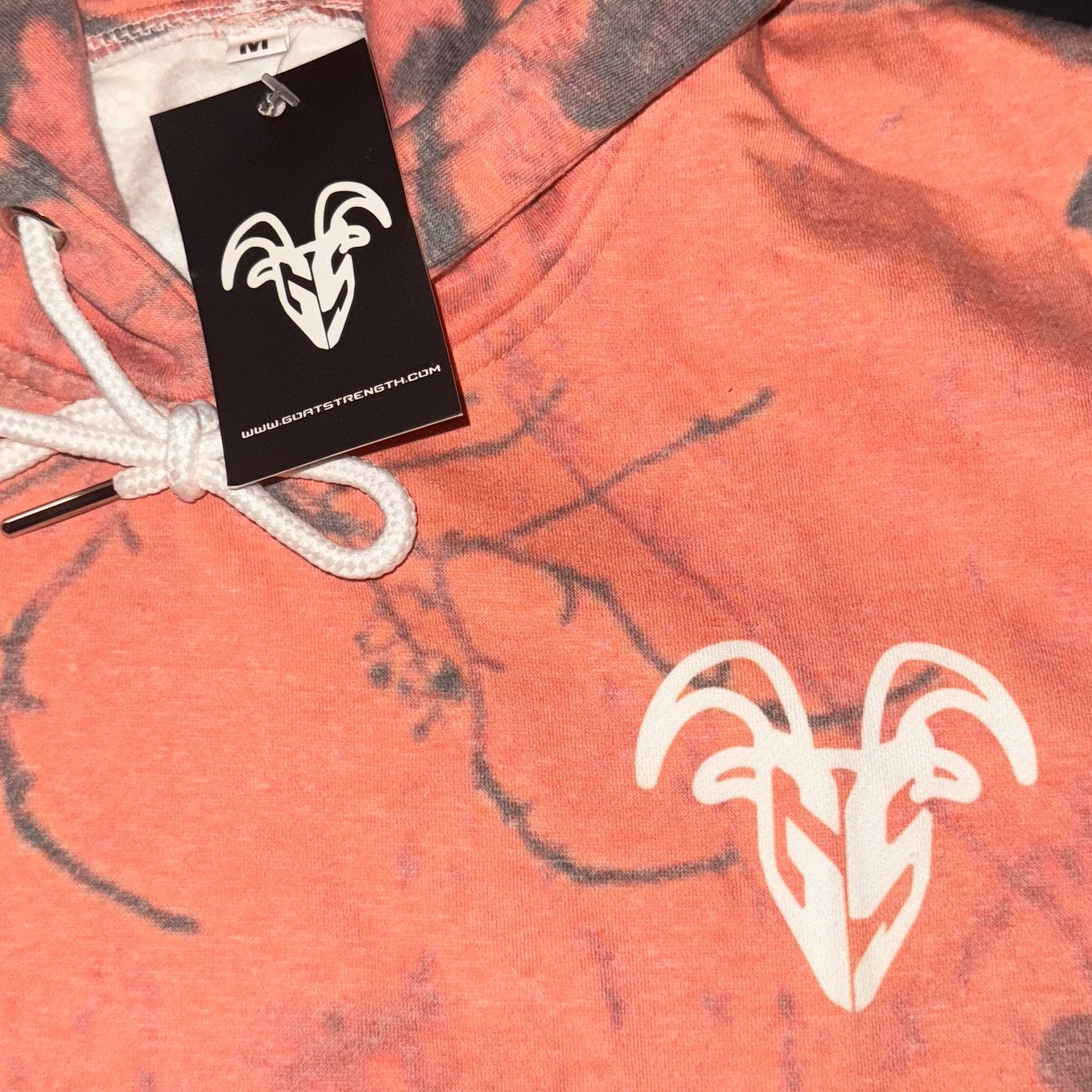 Goat Strength Orange Camo Hoodie - White Washed Acid Washed Camouflage Sweater for Men & Women Sweaters, Realistic Camouflage Cotton Blend