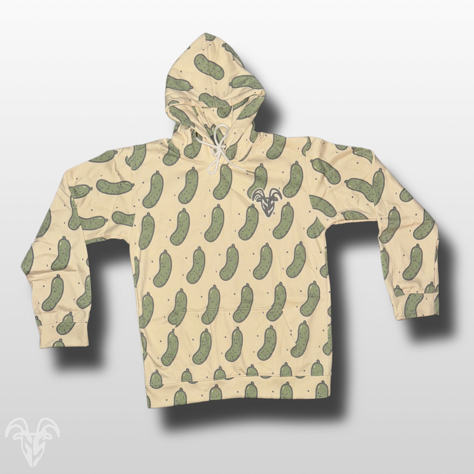 Goat Strength Pickle Pattern Hoodie - White Washed Acid Washed Sweater for Men & Women Sweaters, Cartoonish Pickle Design Cotton Blend