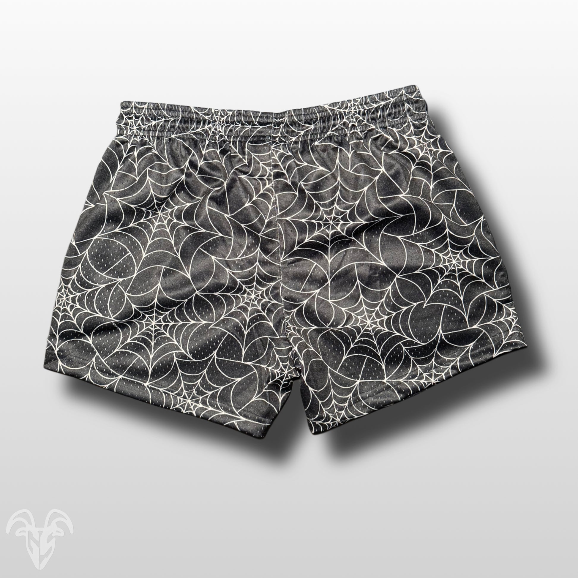 Goat Strength Spider Web Mesh Shorts – Halloween 5” Inseam Athletic Shorts with Zipper Pockets