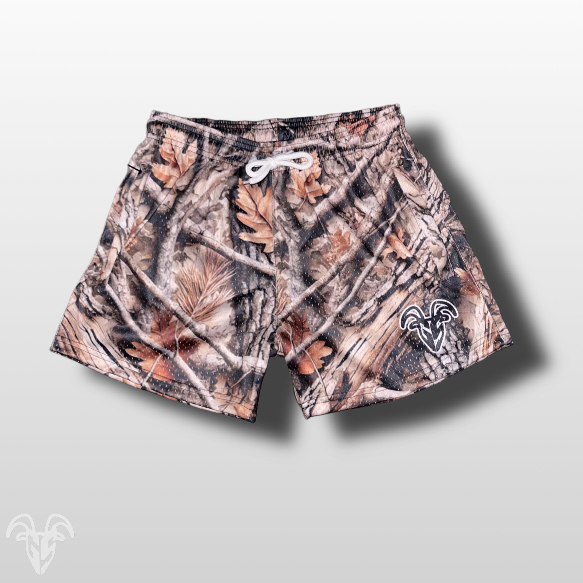 Hunter Camo Goat Strength Mesh Gym Shorts - 5 inch inseam shorts- Zipper Pockets