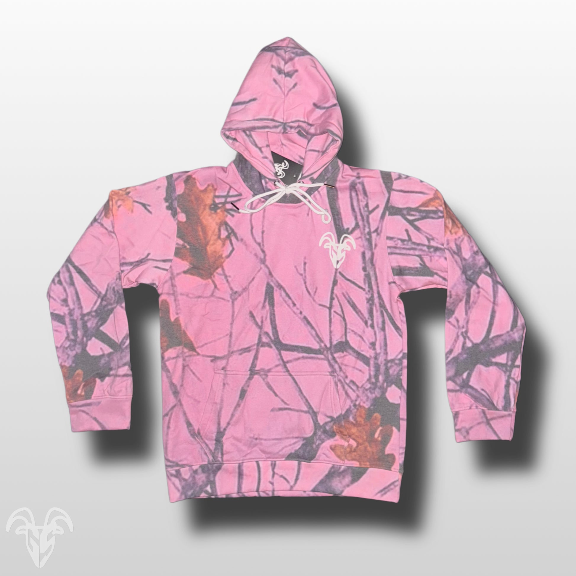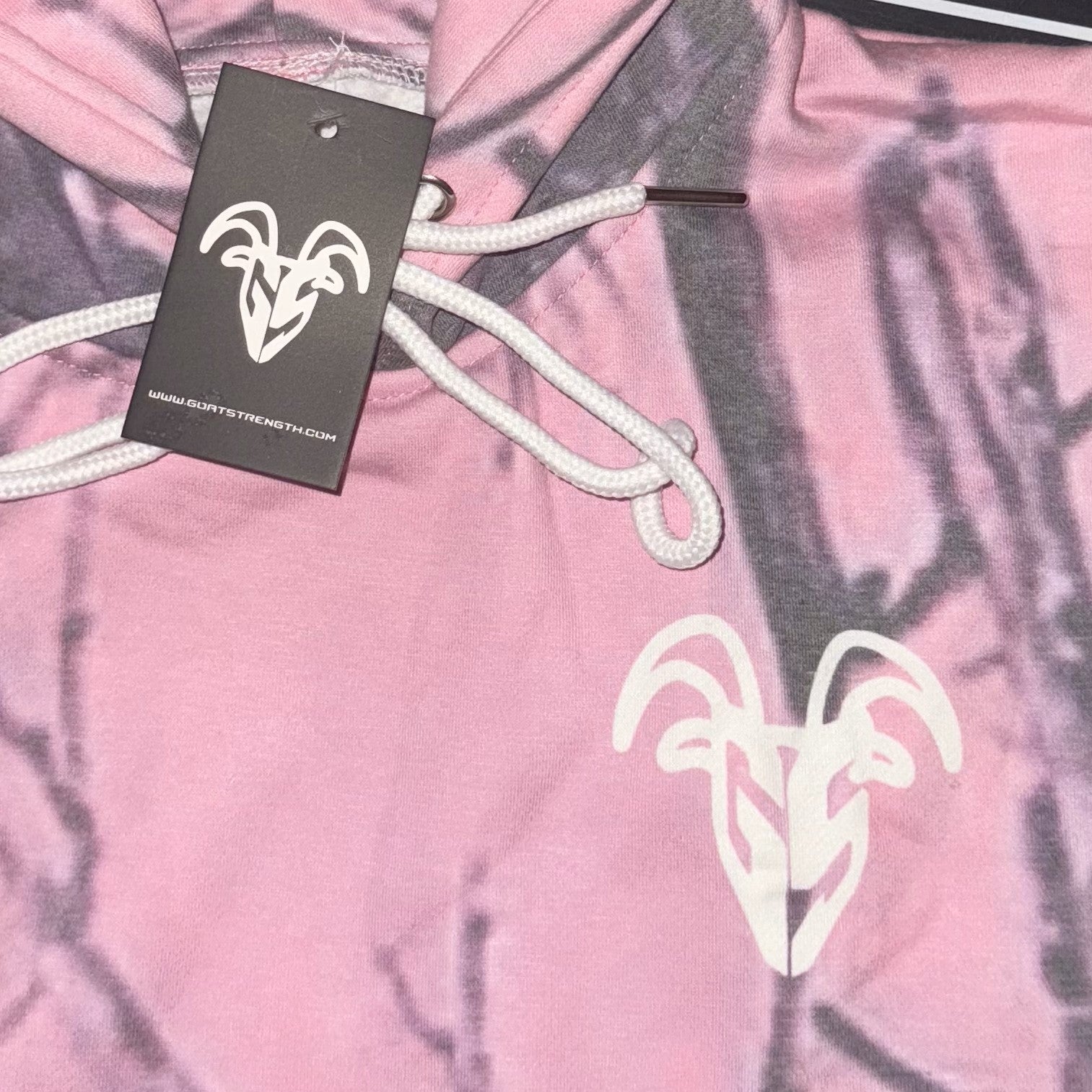 Goat Strength Pink Camo Hoodie - White Washed Acid Washed Camouflage Sweater for Men & Women Sweaters, Realistic Camouflage Cotton Blend