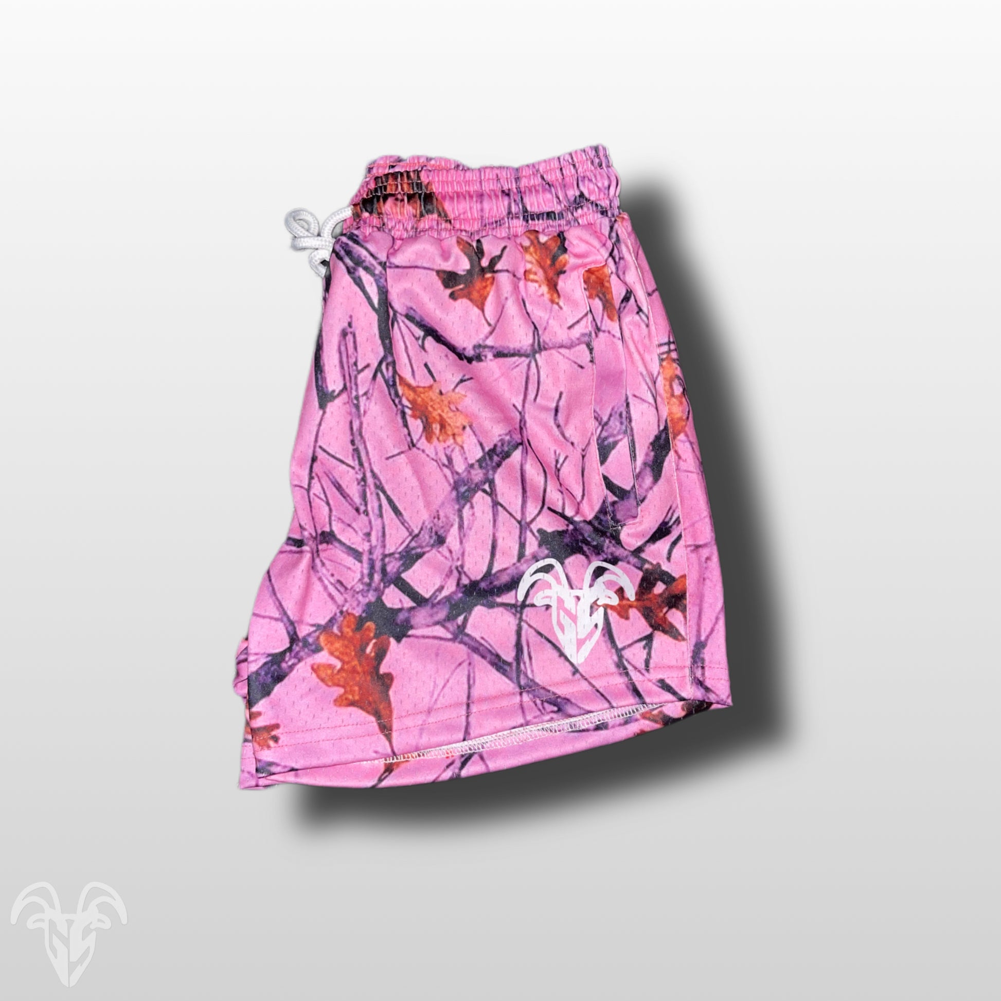 Pink Camo 5 inch Inseam Mesh Shorts - Zipper Pockets For Active ware and Gym Needs