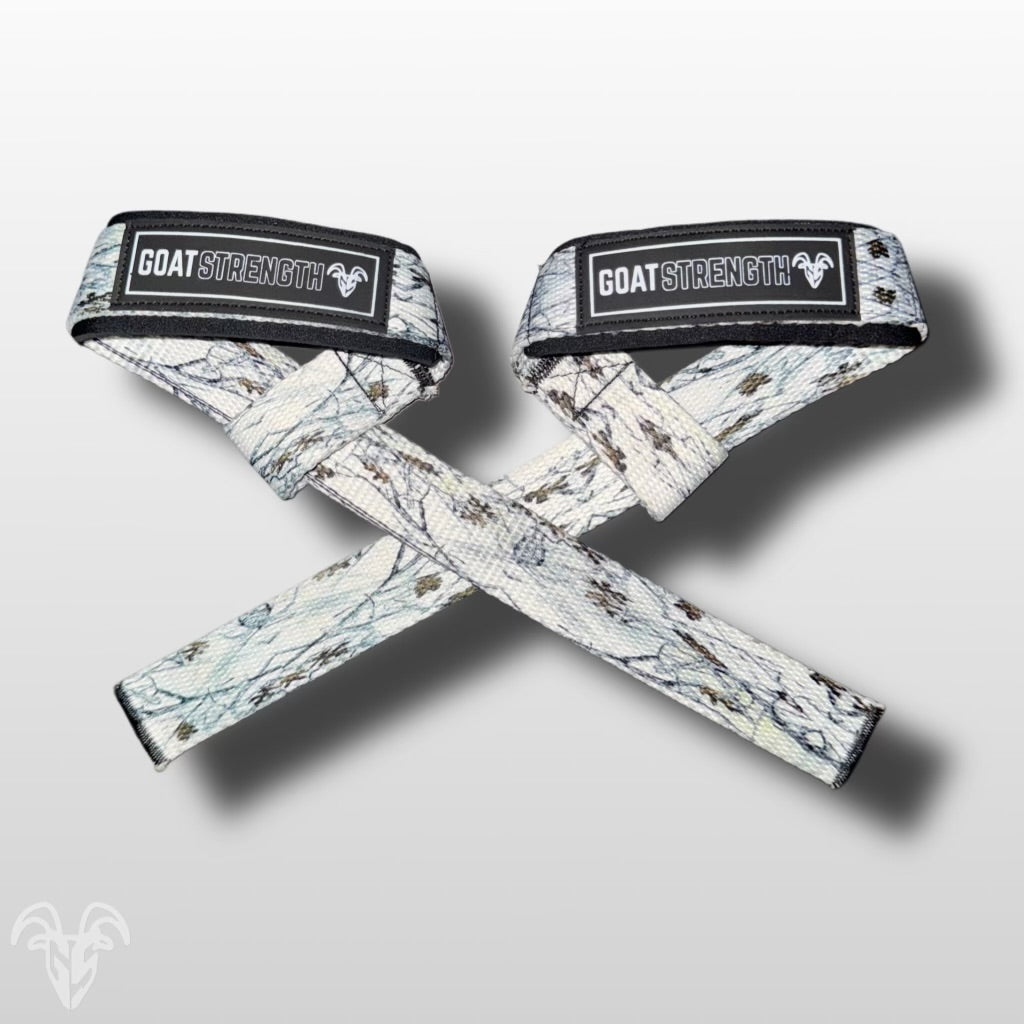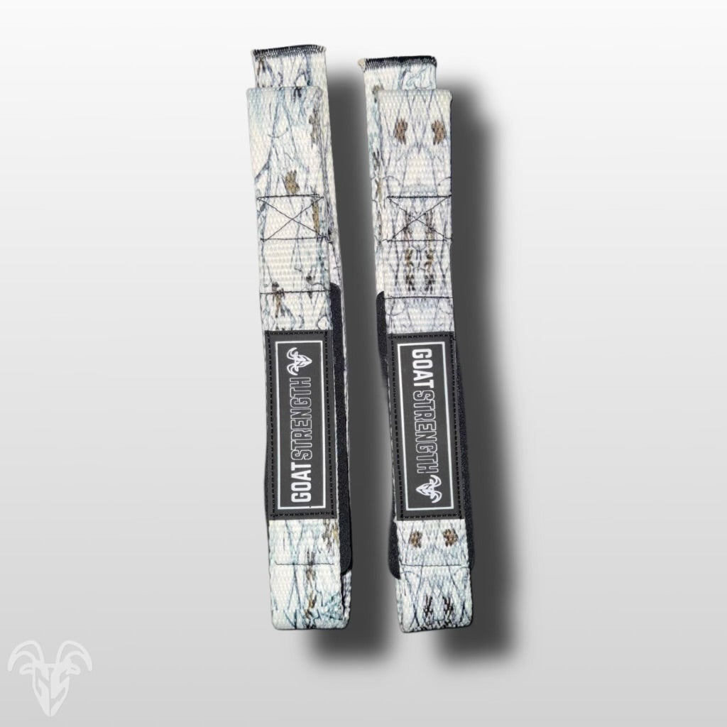 The Goat Strength ARCTIC CAMO Lifting Straps are a pair of wrist straps designed for weightlifting. These wrist straps are perfect for deadlifts and weight training, providing a secure grip on the barbell or dumbbell, reducing the risk of dropping it and potentially injuring the user.